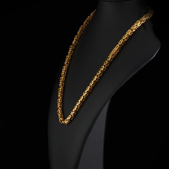 Byzantine necklace made in the durable metal brass with a thick 18k gold plating of Swedish gold. Comes with a handmade box clasp and an exclusive storage bag. Our best selling necklace.