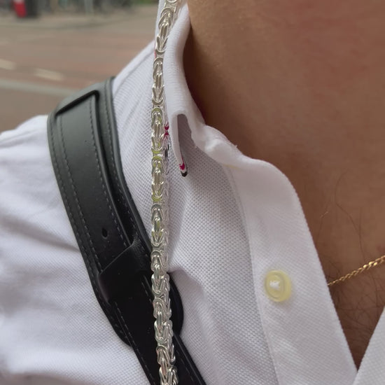 Byzantine necklace in real 925 sterling silver with lobster clasp and stamp. A piece of jewelery you can have for a lifetime, which can withstand both bathing and showering and which can be easily polished.