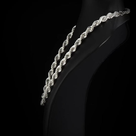 Handmade Rope Chain Necklace in genuine 925 sterling silver with lobster clasp and stamp. Treated in such a way that it shines like white gold! A piece of jewelery you can have for a lifetime, which can withstand both baths and showers and which can be polished easily if necessary.